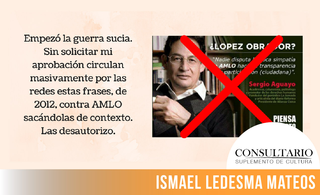 Me ha gustado la reacción de los personajes involucrados en este evento inicial de guerra sucia, pues a pesar de que han criticado a Andrés Manuel, se deslindaron de que pusieran en sus bocas cosas que no dijeron. Un intelectual tiene el deber y el compromiso de ejercer una actitud crítica y no ser servil al poder, lo cual no implica que deje de tomar una posición. La crítica a AMLO es sin duda alguna benéfica para la democracia, sin que ello signifique un ataque o una descalificación. Yo tengo la confianza de que, al igual que Lula Da Silva en Brasil, López Obrador llegue a la presidencia, por el bien de los mexicanos.