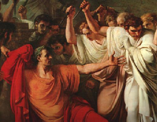 ¿Quién hubiera pensado que Pompeyo y Craso, quienes en sus inicios eran optimates, se convirtieran en popularis para apoyar a César? Juntos llegaron a constituir una alianza de gobierno sólida que fue el primer triunvirato formado precisamente por ellos, Julio César, Pompeyo y Craso, que duró del 60 al 53 a. C. y fue capaz de sentar condiciones para el avance de Roma, aprovechando los logros alcanzados. Pero no, César era uno para todos y eso motivó esa Guerra Civil (49-45), de la que salió victorioso. No obstante, también eso lo marcaría de forma mortal. Temerosos por su victoria, por su carisma, por su arrastre popular, era peligroso que quisiera convertirse en monarca, luego de haber sido nombrado “dictador perpetuo”. Por eso en los idus de marzo (el 15 de marzo del año 44 a. C.) un grupo de senadores encabezados por Marco Junio Bruto (con Trebonio y Décimo Bruto, muy cercanos a César, lo asesinaron con 23 puñaladas, cumpliéndose así el destino que el oráculo había vaticinado. En el texto de Shakespeare La tragedia de Julio César, éste al ver a Bruto exclama: “¡Tú también, Bruto, hijo mío!”, debido a su cercanía afectiva con su asesino.