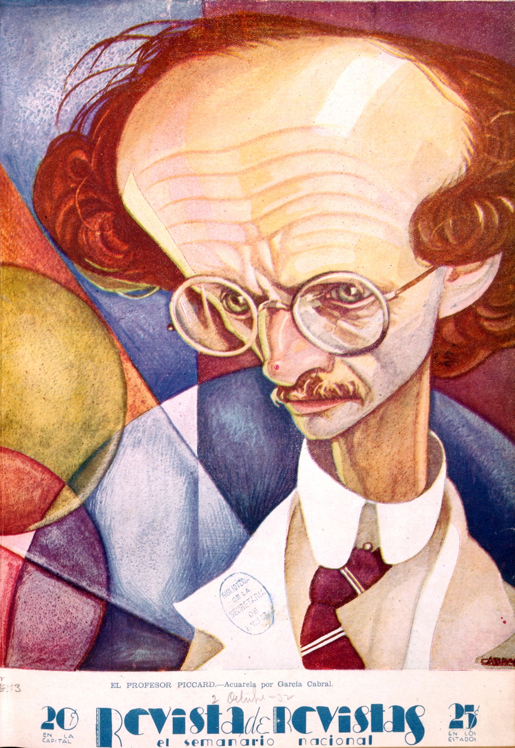 Auguste Antoine Piccard, físico e ingeniero suizo, apareció retratado en técnica de acuarela en la portada de Revista de Revistas del 2 de octubre de 1932. Egresó de la prestigiosa Escuela Politécnica Federal de Zürich para estudiar ingeniería física, institución a la que también asistirían Albert Einstein y el matemático húngaro-estadounidense John von Neumann.