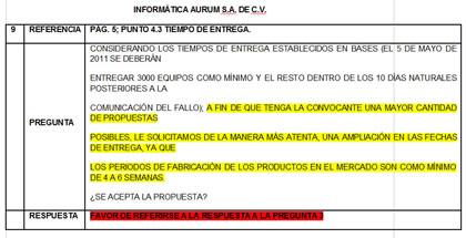 Un detalle final pero no menos relevante, que hace suponer que la licitación 50067001-025-11 estuvo sesgada desde el principio, es que el ganador de la misma —que participó a través de dos empresas— fue el único que no cuestionó los plazos de entrega de las primeras 3,000 computadoras portátiles ni tampoco el candado legal del software cargado.