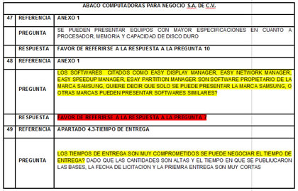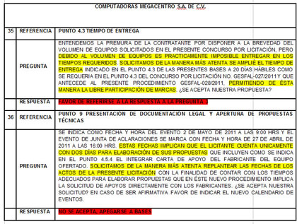 Otro detalle que llama la atención, y que incluso fue cuestionado por seis de las empresas que se inscribieron y participaron en la Junta de Aclaraciones del 27 de abril, fue la condición de que los equipos de cómputo deberían incluir el software de Microsoft Office cargado en su sistema operativo.