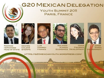 El jefe de la delegación juvenil mexicana llegó a París el domingo 29 de mayo para participar primero en las discusiones del G8 que tuvieron lugar de lunes a viernes, y permanecerá toda esta semana para asistir a las reuniones del G20 en las que estarán presentes líderes juveniles de 90 países del mundo.