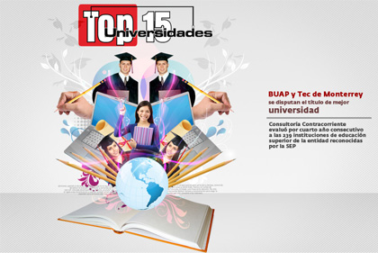En el Top 15 Universidades 2011, la BUAP y el Tec de Monterrey se colocaron como las mejores instituciones de educación superior de Puebla, en una evaluación que abarcó a los 239 planteles de este tipo que cuentan con reconocimiento oficial de la Secretaría de Educación Pública.