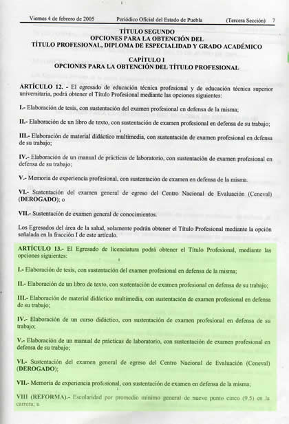 Un instrumento que las autoridades educativas no han querido hacer efectivo, y que permitiría elevar en el corto plazo la calidad de las instituciones de educación superior de la entidad es el acuerdo de la Secretaría de Educación Pública (SEP) que regula las opciones para la obtención del título profesional.
