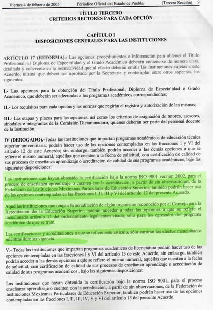 Según este acuerdo emitido por el titular de la SEP Carlos Alberto Julián y Nacer hace más de seis años, sólo las instituciones o universidades que cuenten con programas de estudios acreditados y certificados pueden hacer uso de las diferentes formas que existen para obtener el grado de licenciado.